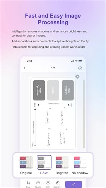 联想扫描王不仅让用户扫描的文件更美观,而且通过强大的图像处理技术,它可以快速帮助用户将纸质文件转换为数字格式,满足各种不同的需求。