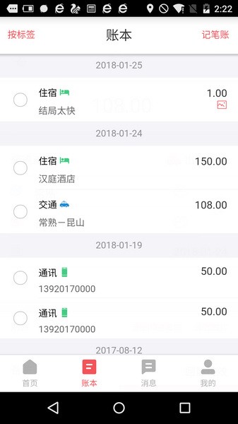 【记账】员工随时、随地记录交易事件;接入滴滴出行,直接选取行程报账;