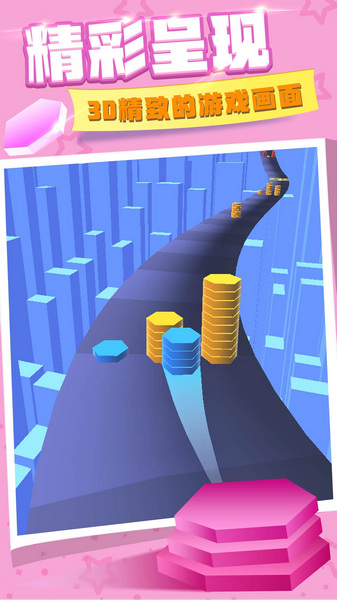 刚开始玩的时候,我还以为这只是一个普通的跑酷游戏,结果发现居然要叠方块,这个设定让我觉得有点新鲜又有趣。一开始我总是撞到障碍物,不过慢慢掌握了节奏后,感觉越来越上手了。有时候会因为反应不够快而失误,但这种挑战也挺有成就感的。