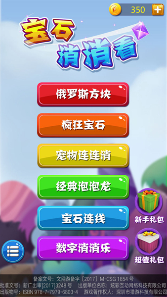 宝石消消看是一款超级好玩的消除类手游,里面包含了超多经典玩法,像是俄罗斯方块、泡泡龙、连连看还有数字消除等等,每次打开主界面都能看到这些游戏,感觉特别丰富。游戏里的方块都是宝石造型,画面非常漂亮,而且还能用各种强力道具来帮忙,玩起来轻松又有趣。