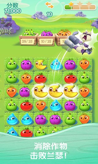 1、游戏呈现出精美的画面效果,采用了卡通Q萌的画风,所有的瓜果蔬菜和动物都被拟人化设计;