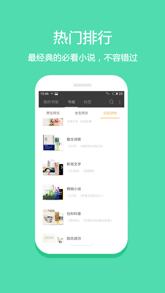 2、点击书城可以看到男生、女生、出版等分类;