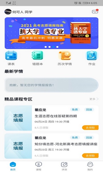 课程帮学生端是一款专为学生们打造的线上学习工具,其中有大量对课程可以报名学习,能够为多个年级段以及多门学科提供教学,另外还有针对高考报名志愿方面的答疑,让学生更快了解该如何进行填报志愿。软件中还可以对自己的学习情况进行统计,能够通过数据来看出自己是进步还是退步了,还有错题本、作业等功能。
