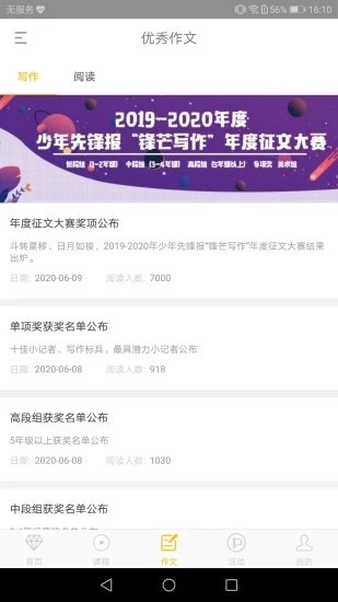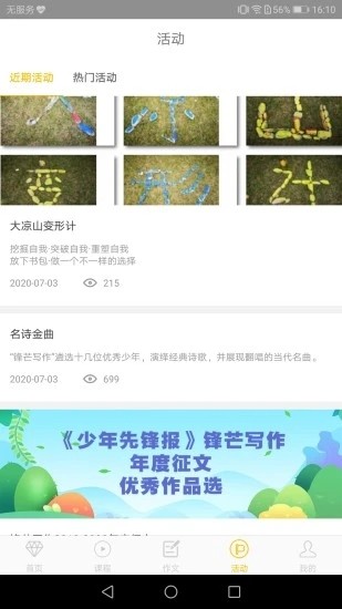 最棒的是这个软件还会定期举办各种活动,不仅增加了学习的乐趣,还能通过比赛锻炼写作能力。总之,锋芒写作APP真的是一个让我爱不释手的学习工具,强烈推荐给所有需要提升语文成绩的同学!
