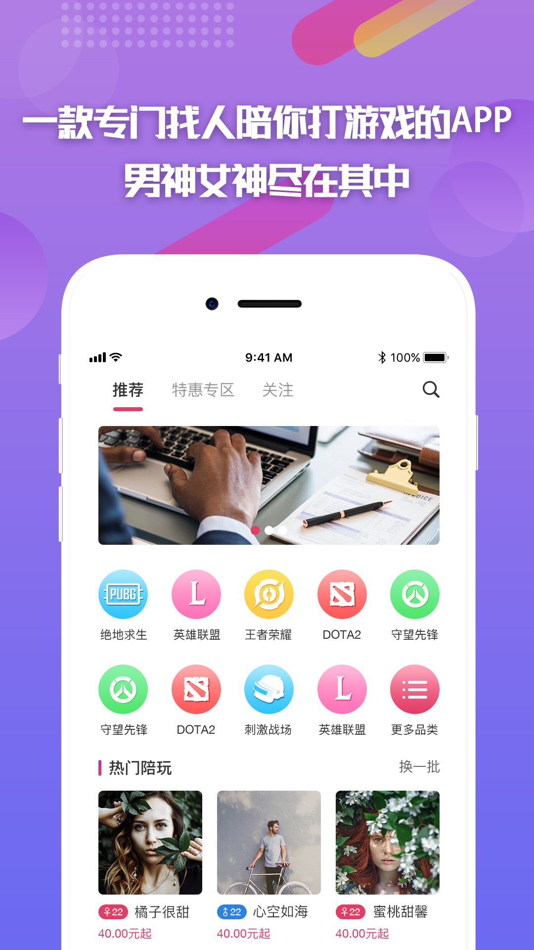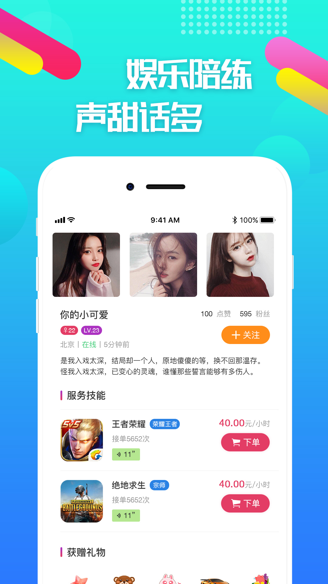 上万游戏、娱乐大神,经过严格审核认证,提供陪练,与女神零距离沟通,让你喜欢的妹子陪你畅玩!