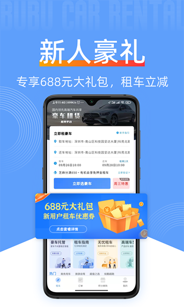 2、租车福利,新客688元大礼包,立享折扣优惠;