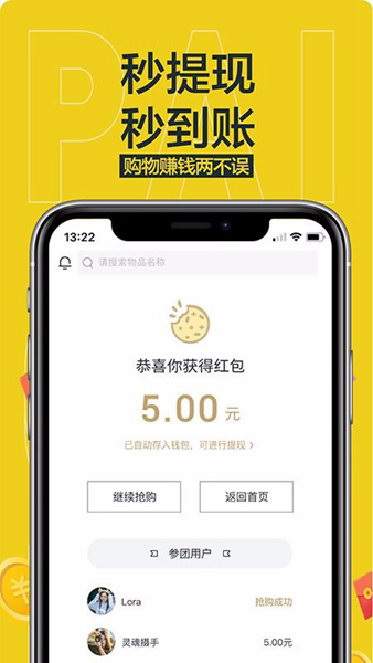 2.秉承“补贴用户”的运营概念,运行参团必拿红包的游戏规则 ,体验全新的购物能带来红包的乐趣。