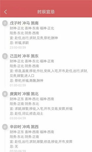 时辰宜忌,在看老黄历的时候就可以了解到当天的时辰宜忌信息;