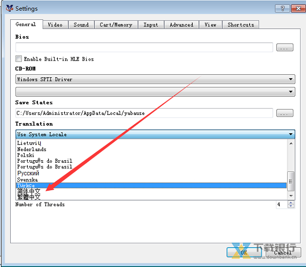 2、进入设置中文的窗口,选择Translation选项的简体中文,然后点击右下方的OK