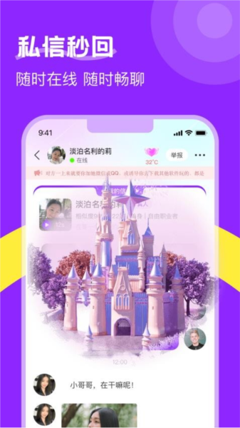 最让我觉得靠谱的是它的用户审核机制,所有用户都经过严格筛选,这样交流起来更安全放心。软件还支持日常动态分享、消息查询等功能,操作简单又实用。作为一个喜欢结交新朋友的人,我觉得这个APP挺适合我的需求,既能高效找到志同道合的人,又能避免很多社交尴尬。