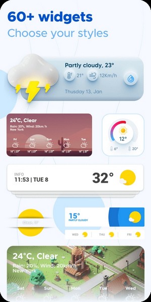 软件功能强大,整合了Dark Sky、WeatherBit和AccuWeather等多个知名天气数据源,用户可以根据需求随时切换。它不仅可以提供24小时和7天的天气预报,还有恶劣天气警报功能,帮助用户提前做好准备。此外,软件还支持多种主屏幕小工具和Pixel Launcher的“概览”小部件,方便用户快速查看天气信息。