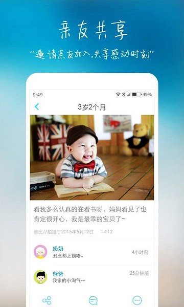 3.能够记录成长的瞬间,让你的宝宝更加健康的成长,宝宝长大以后也可以进行查看,查看自己小时候的状况。