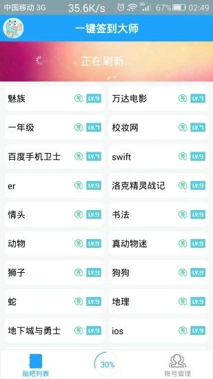 4、智能的多账号管理,每个账号可签到贴吧无限制,添加账号无限制,一键签多账号。