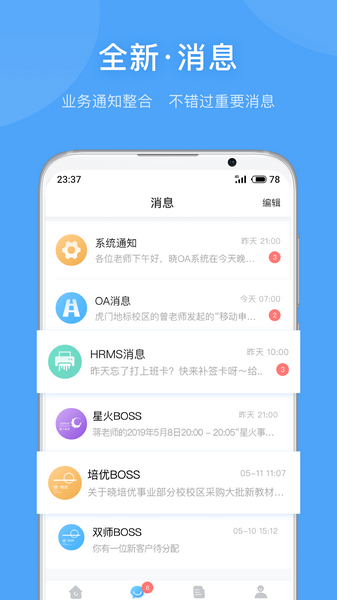 晓助手安卓系统融合了包括运营、办公自动化、人事等在内的企业内部协同事务,