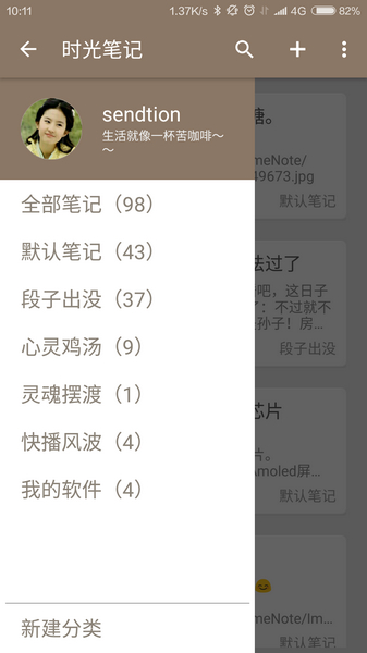 3、接下来在主页中点击左上方按钮,还可以在列表中对自己的笔记进行分类,从而方便自己查看。