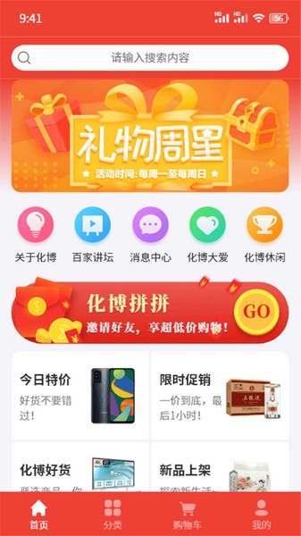 化博易购最新app是一款综合了超多精选商品的优惠购物平台,更有限时促销、新品上架以及今日特价等诸多板块,能够非常好的满足大家不同的购物需求。化博易购app上的分类也非常的详细,除了各种科技产品与服饰鞋帽等,还提供了饮品、美食等,用户们也能够输入关键词来搜索喜欢的商品。简单又好用的便捷操作将为大家带来更舒适的购物体验。