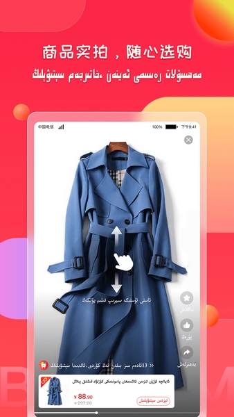 BAZIRIM 是一款专为新疆维吾尔族用户设计的购物APP,类似京东、淘宝,支持维吾尔语购物。它提供丰富的商品种类,包括衣服、电子产品、保健品等,还有针对微商的分销功能。软件特色鲜明,比如天天领金币、晒单返现、分享有礼等促销活动,吸引了不少用户。最大的优势是全维语、包邮和价格便宜。