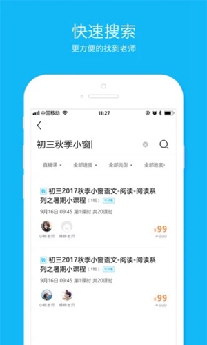 5.搜索:可按年级、按科目等条件找到中意的老师及课程。