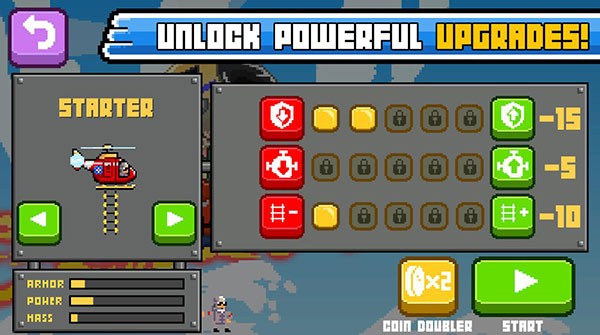 操作上是全屏触控,手指滑动就能控制飞行方向和高度,简单又灵活。最让我喜欢的是随机任务模式,每次失败重来都会有新的场景和挑战,不会觉得无聊。而且还有五种直升机可以解锁升级,提升速度、护盾这些属性,挺有成就感的。