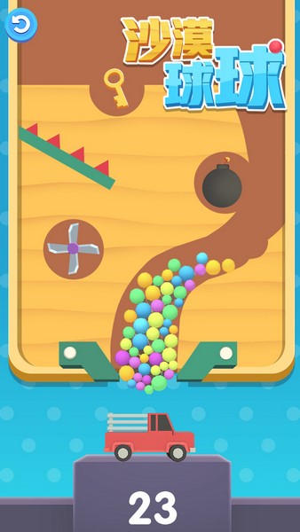 沙漠球球是一款非常减压的物理小游戏,这里有超多关卡组成,每关都有不一样的场景布局,而玩家要做的事情都是一样的,那就是把尽可能多的球装到卡车里面去。玩家只需在屏幕上滑动即可在这里开辟出一条道路,让小球从上面沿着路线滚动,同时避开沿途中的陷阱,使其安全进入卡车即可。每关都需要玩家思考最佳的路线,非常好玩。