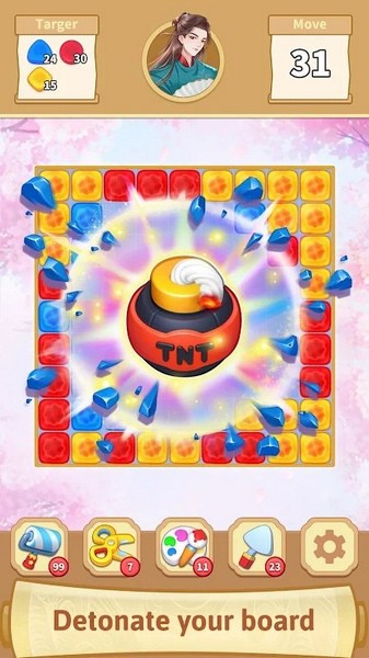 3、善用底部道具(如炸弹、画笔等)助力快速消除,完成关卡目标推进图鉴收集。