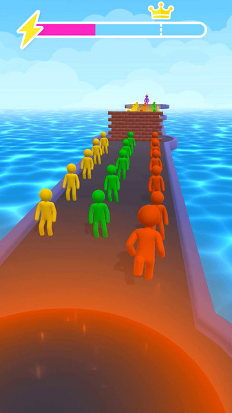 1、简洁场景画面去挑战不同的关卡,指尖灵活控制避开无数机关和,吸收更多小人加入你的队伍;