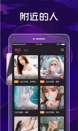 2、带你轻松认识附近的人,首页即可看到周围在线的人,随时和他们聊天;