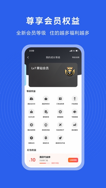 享受合作酒店提供的延迟退房、免押、免费早餐等特权,因私预订更省钱。