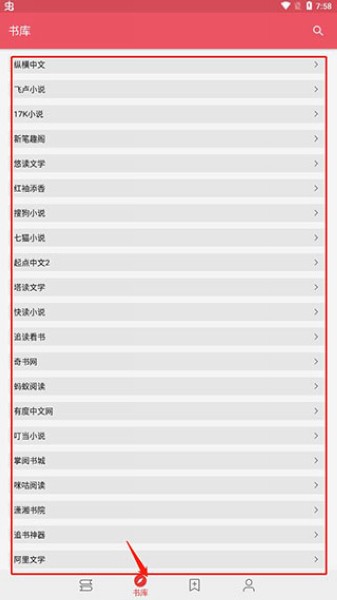 1、先下载好喵喵追书app,下载完成后打开app,在书库中找到自己平时爱看的平台。