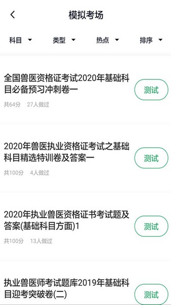 有模拟考场、历年真题练习、每日一练、快速练习、考点练习、考试押题、做题记录等多种学习与做题模式、丰富多样化的陪你一起考执业兽医。