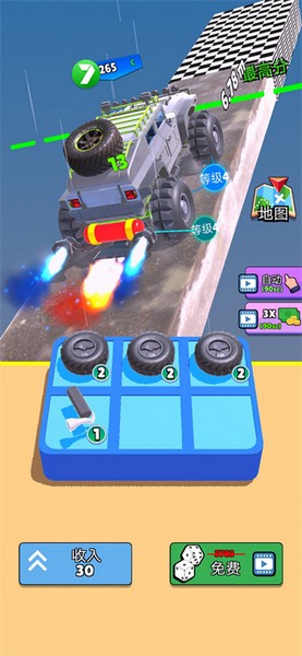 2、玩家可以通过投掷骰子来获取汽车配件来给汽车升级;
