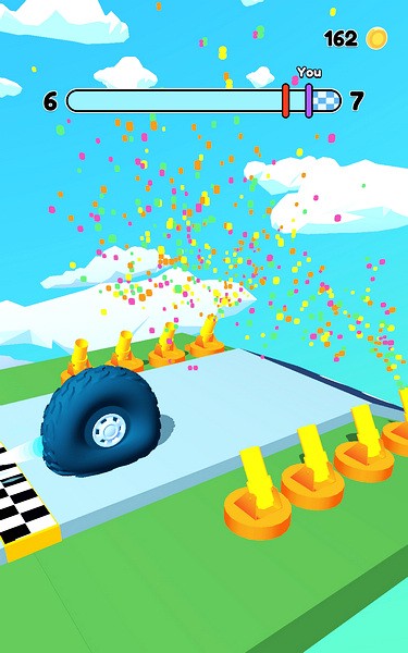 飞车大作战破解版是一款以竞速为主要玩法的竞速手游,并且玩法非常搞怪,游戏中大家将操控一个属于自己的轮胎在不同的赛道中冒险,其中还为大家提供了许多非常难的赛道挑战,并且游戏中的轮胎也有不同的种类,直径小的轮胎,移动速度快,能从障碍物下的空隙穿过,但抓地力不强,无法越过一些隆起的障碍物,大直径轮胎则正好相反,需要玩家们根据赛道来选择合适的轮胎。