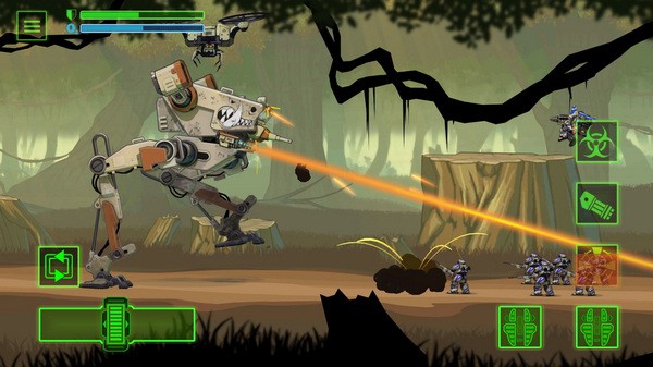 3、操作非常简单。简单的按键让你控制大型机器人的前后左右移动,灵活躲避手雷!