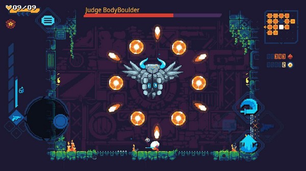 最重的守护者。它有两个阶段,其中一个阶段出现在屏幕的左上角或右下角,我们几乎无法对其进行任何操作。她开始散布导弹。我建议您等待这一阶段,避免射弹(可以弹起)并用手枪射击。在第二阶段,它出现在中间。