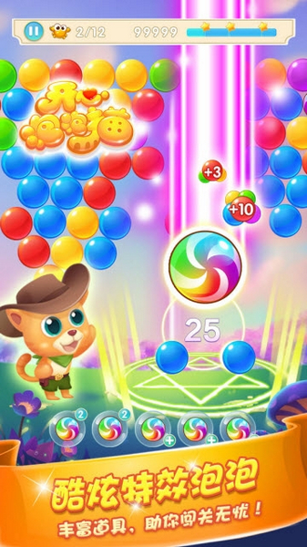 开心泡泡猫是一款泡泡龙玩法的休闲游戏,在爽快的泡泡消除基础玩法之上还增加了3大玩法各异的关卡类型和10余种增益特效,为玩家带来了丰富的游戏体验。游戏还设计了NPC独有的特殊技能,在关卡进行中适时为玩家提供释放点,让游戏节奏有起有伏,挑战与爽感并存!游戏将弹珠台的概念结合至传统泡泡类游戏之中,精美的游戏画面,简单的游戏操作,带给你全新的消除体验,非常好玩。