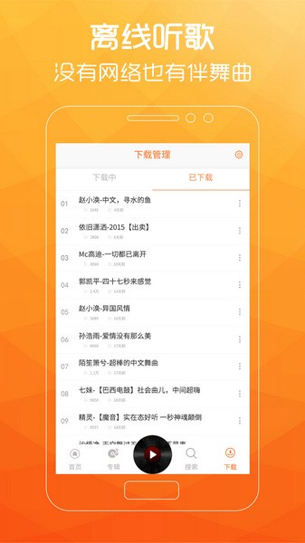 广场舞歌曲是一款专为广场舞爱好者们打造的音乐搜索和下载平台,大家可以快速下载平台中的海量广场舞歌曲内容。软件还为大家提供了详细分类的广场舞曲,大家可以快速找到自己喜欢的内容。便捷的离线听歌功能可以让大家随时随地开始锻炼。软件界面简洁友好,贴心的大字模式可以非常好的满足不同年龄段用户的歌曲下载需求,真正带给大家全新的广场舞体验。