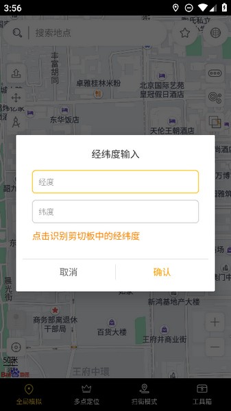 1、 点击天下任我行底部菜单的扫街模式,点击已经添加好路线的应用;