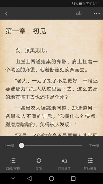 在阅读期间可以自由的设置小说内容字体大小,个性化阅读