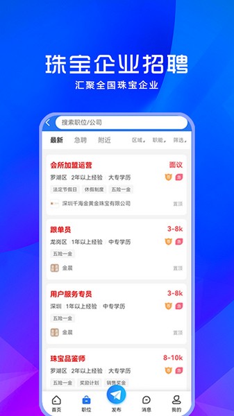 2.是珠宝行业人才招聘专业垂直平台,专注于为全国珠宝企业输送人才。