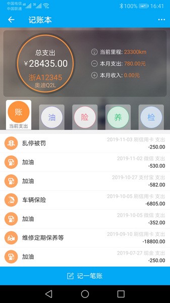 7、油耗记账: