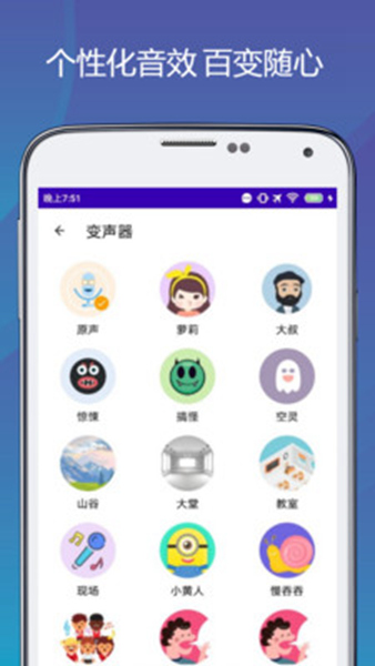 1. 变声器, 拥有各种音效:机器人、松鼠、女变男、男变女、萝莉、醉酒,还能自定义音效!