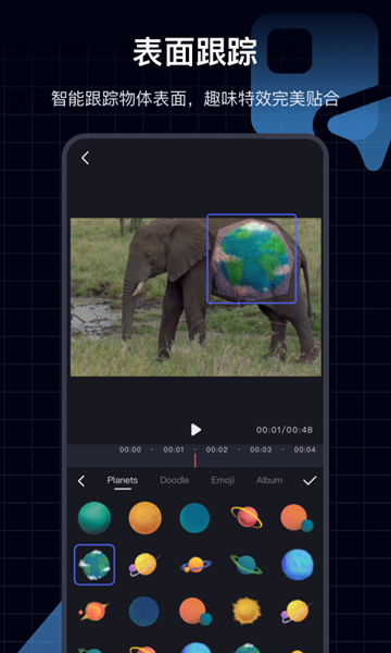 3、智能跟踪表面,表面跟踪功能可以智能跟踪物体表面实现特效的完美效果;