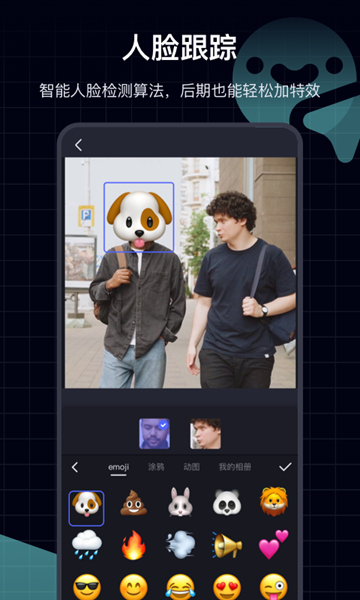 5、智能跟踪人脸,内置的智能人脸检测技术能够精准跟踪一个人的人脸进行特效添加;