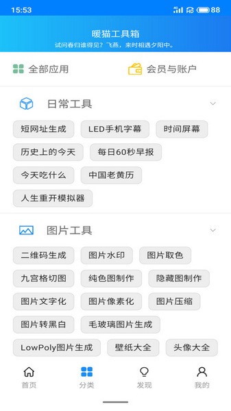 暖猫工具箱下载手机版是一款超级实用的多功能工具软件,功能非常强大,涵盖了各种日常、系统和图片处理工具,分类清晰,操作简单,界面也很好看,用起来特别方便。作为一个经常需要用到各种小工具的人来说,这个软件真的让我省了很多事,不用再东找西找,一个App就能满足我的需求。