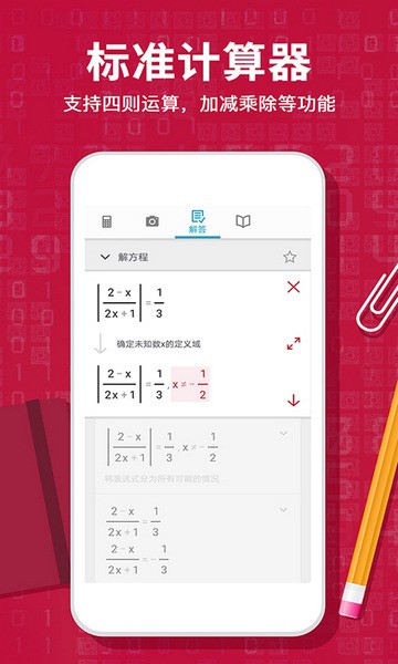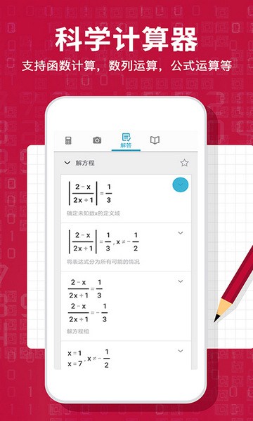 PhotoMath安卓版破解版是一款能够为数学学习带来更多便利的软件,支持拍照搜题,简单几步就能够获得详细的解答和步骤过程。此外,软件还提供了计算器功能,除了基础的加减乘除之外,还有平方、开根以及对数、极限等在内的多种复杂运算,操作上也非常的方便,大家可以非常轻松的就获得所需要的答案,帮助提高自己的数学能力和运算水平。