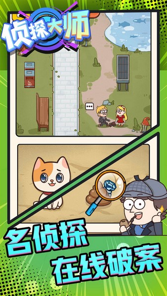 侦探大师是一款十分有趣的推理游戏,采用的是比较可爱的卡通画风。玩家需要根据场景中有限的线索来找出最终的答案,而其中有很多对象都是可以互动的,并且还有机会获得全新的更加关键的线索,帮你顺利解开谜题。游戏中案件的类型也是非常多样的,玩家可以欣赏到各种故事,并且还有多个道具可以协助破案,如果遇到困难了就可以考虑使用道具。