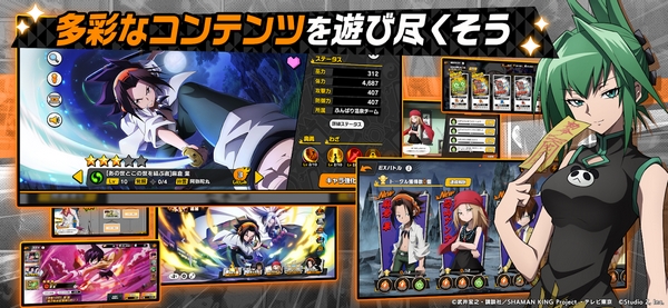 玩家能够选择多名《通灵王》的登场角色来组成属於自己的原创队伍,在角色发动技能时的震魄3D战斗画面,绝对让你感觉到亲历栩栩如生的动画场景当中,而且游戏内有多张全新绘制的角色原创插图供玩家欣赏。