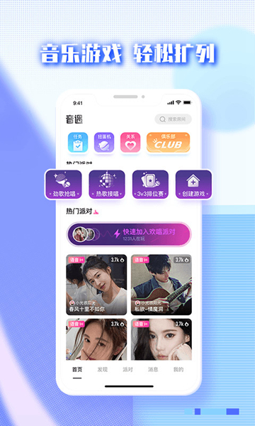 音遇APP是一款非常自由的K歌手机软件,这里有海量曲库任你挑选,想唱什么就唱什么,这里有超多热爱唱歌的用户陪你一起放声大唱。软件中有十分有趣的匹配玩法,一共可以6个人一起唱歌,并且还有抢唱和PK玩法,看大神们互飙歌技。此外这里还提供了AI识别,能够及时分析并提供准确率。如果还嫌不够,还可以使用混音效果,让声音更加动人,同时带动房间的气氛。