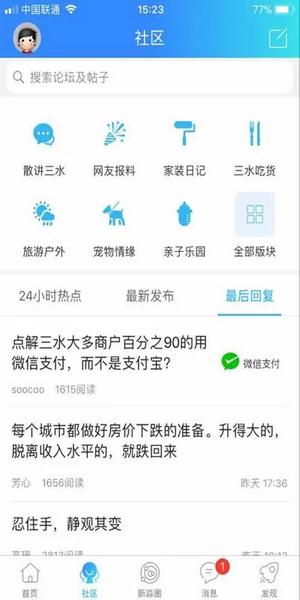 社区新帖热帖实时更新,所有数据和网站实时同步