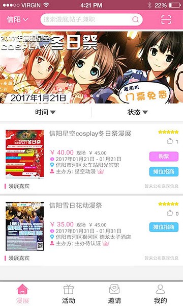 2、网罗同人、动漫、Cosplay、Live等二次元展览资讯。